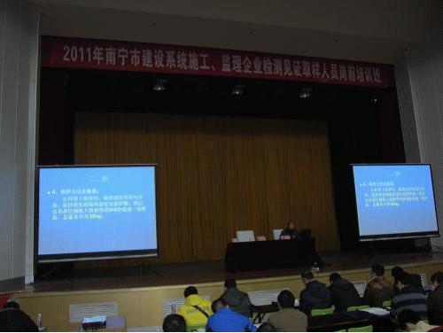 根據(jù)《關(guān)于舉辦2011年施工、監(jiān)理企業(yè)見證取樣人員崗前培訓(xùn)班的通知》,南寧市從2011年12月6日開始,對南寧市各施工單位、監(jiān)理單位、房地產(chǎn)開發(fā)單位以及市各有關(guān)建設(shè)單位在從事或?qū)氖陆ㄔO(shè)工程見證取樣工作的人員進(jìn)行建設(shè)系統(tǒng)施工、監(jiān)理企業(yè)檢測見證取樣人員崗前培訓(xùn)及考試。南寧品正參加了第4期培訓(xùn)及考試,參加培訓(xùn)總?cè)藬?shù)達(dá)到84人。