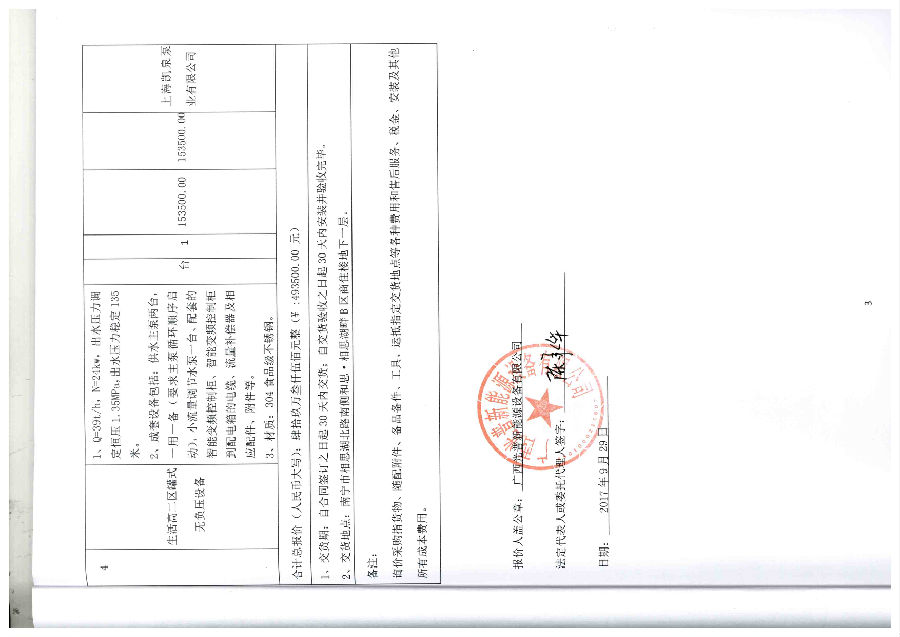 南寧品正建設(shè)咨詢有限責(zé)任公司受南寧市和思置業(yè)有限公司的委托,根據(jù)《中華人民共和國政府采購法》等有關(guān)規(guī)定,于2017年9月29日就和思·相思湖畔B區(qū)商住樓無負(fù)壓供水設(shè)備采購(NNPZ2017-675E)項(xiàng)目采用詢價(jià)方式進(jìn)行采購,現(xiàn)就本次招標(biāo)的中標(biāo)結(jié)果公告如下: