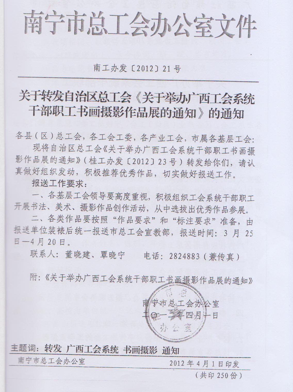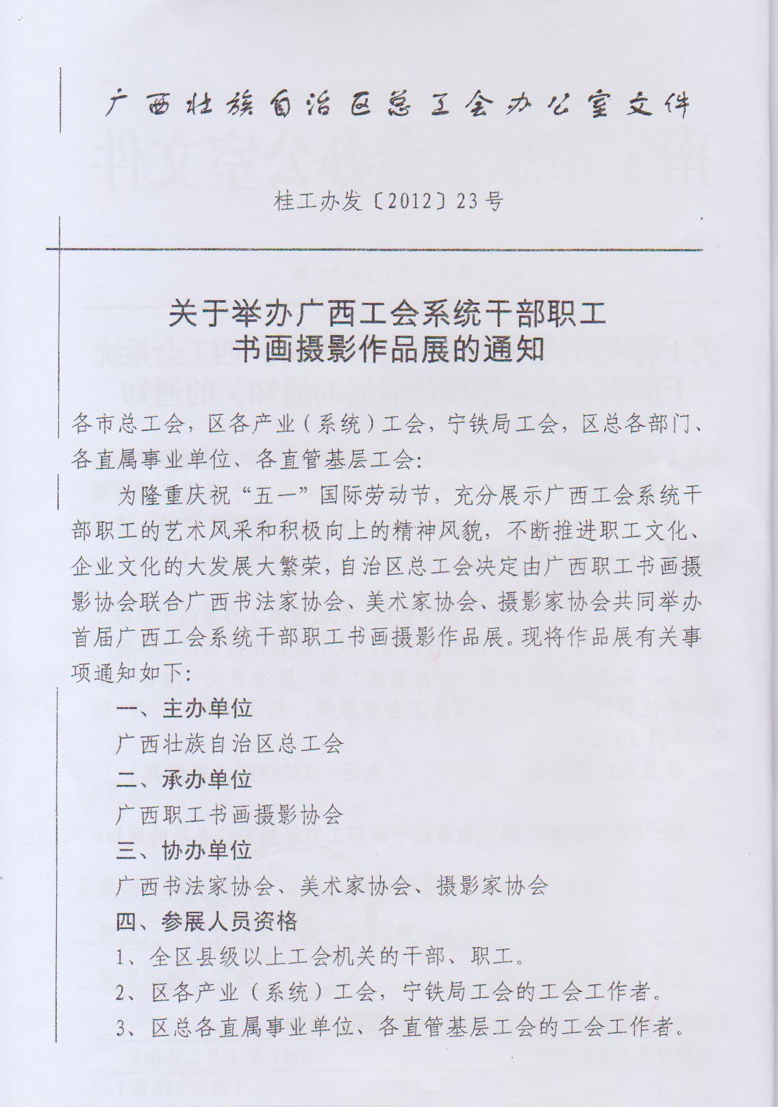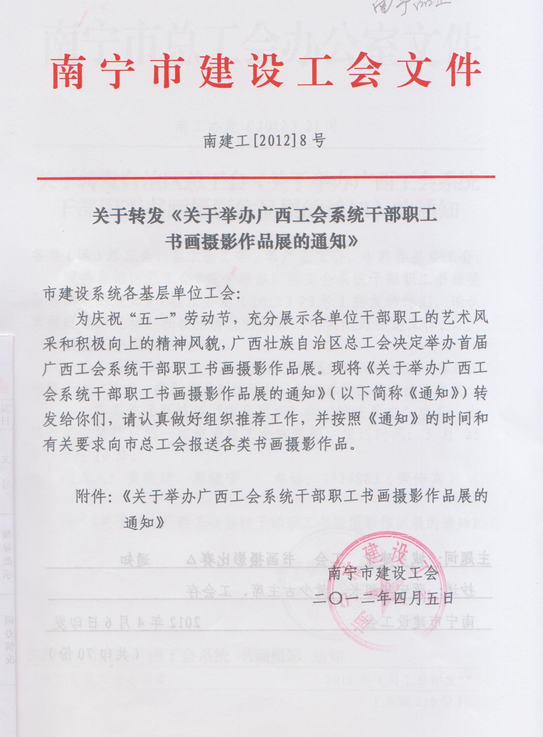 關(guān)于轉(zhuǎn)發(fā)《關(guān)于舉辦廣西工會系統(tǒng)干部職工書畫攝影作品展的通知》
