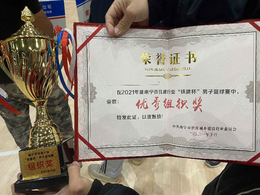 為進(jìn)一步提高黨員群眾的身體素質(zhì),豐富黨員群眾的體育生活,增強(qiáng)黨組織的凝聚力和戰(zhàn)斗力,2021年10月19日,中共南寧品正建設(shè)咨詢(xún)有限責(zé)任公司支部委員會(huì)、南寧品正建設(shè)咨詢(xún)有限責(zé)任公司籃球隊(duì)參加了中共南寧市住房城鄉(xiāng)建設(shè)行業(yè)委員會(huì)舉辦的“鐵建杯”男子籃球比賽,經(jīng)過(guò)拼搏,獲得第四名,并榮獲了“優(yōu)秀組織獎(jiǎng)”稱(chēng)號(hào)。