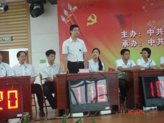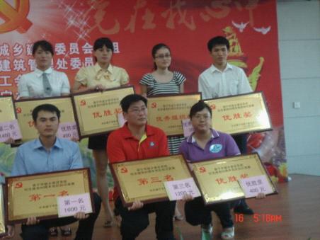 根據(jù)市城鄉(xiāng)建委有關(guān)文件精神,南寧品正黨支部高度重視,于“七一”前夕,精心組織開展豐富多彩的活動慶祝建黨90周年,取得較好成效。一是組織員工參加市紀(jì)委慶祝建黨90周年暨“南寧清風(fēng)”反腐倡廉書畫攝影作品征稿活動,公司黨支部共報送一幅書法,8幅照片,作品以慶祝建黨90周年展黨的輝煌成就,頌清風(fēng)正氣揚南寧發(fā)展成果為主題。二是組織10名員工參加市城鄉(xiāng)建委系統(tǒng)合唱隊,隊員們遵守紀(jì)律,認(rèn)真排練。6月13日,市城鄉(xiāng)建委參加市直機(jī)關(guān)慶祝建黨90周年“綠城紅歌獻(xiàn)給黨”合唱比賽,獲三等獎。三是組織選派李智、陳倩、黃綿全三名員工參加市城鄉(xiāng)建委系統(tǒng)慶祝建黨90周年黨的知識競賽,獲預(yù)賽第一名,決賽優(yōu)勝獎和優(yōu)秀組織獎。四是,南寧品正黨支部與市建設(shè)建筑管理監(jiān)察支隊黨支部于7月1日在金滿園休閑觀光果園開展紀(jì)念建黨90周年暨“結(jié)對共建,先鋒同行”主題黨日活動。雙方單位黨員、入黨積極分子、群眾代表等約70人參加活動。活動內(nèi)容有重溫入黨誓詞、唱紅歌、黨史和廉政知識搶答、文體活動等。